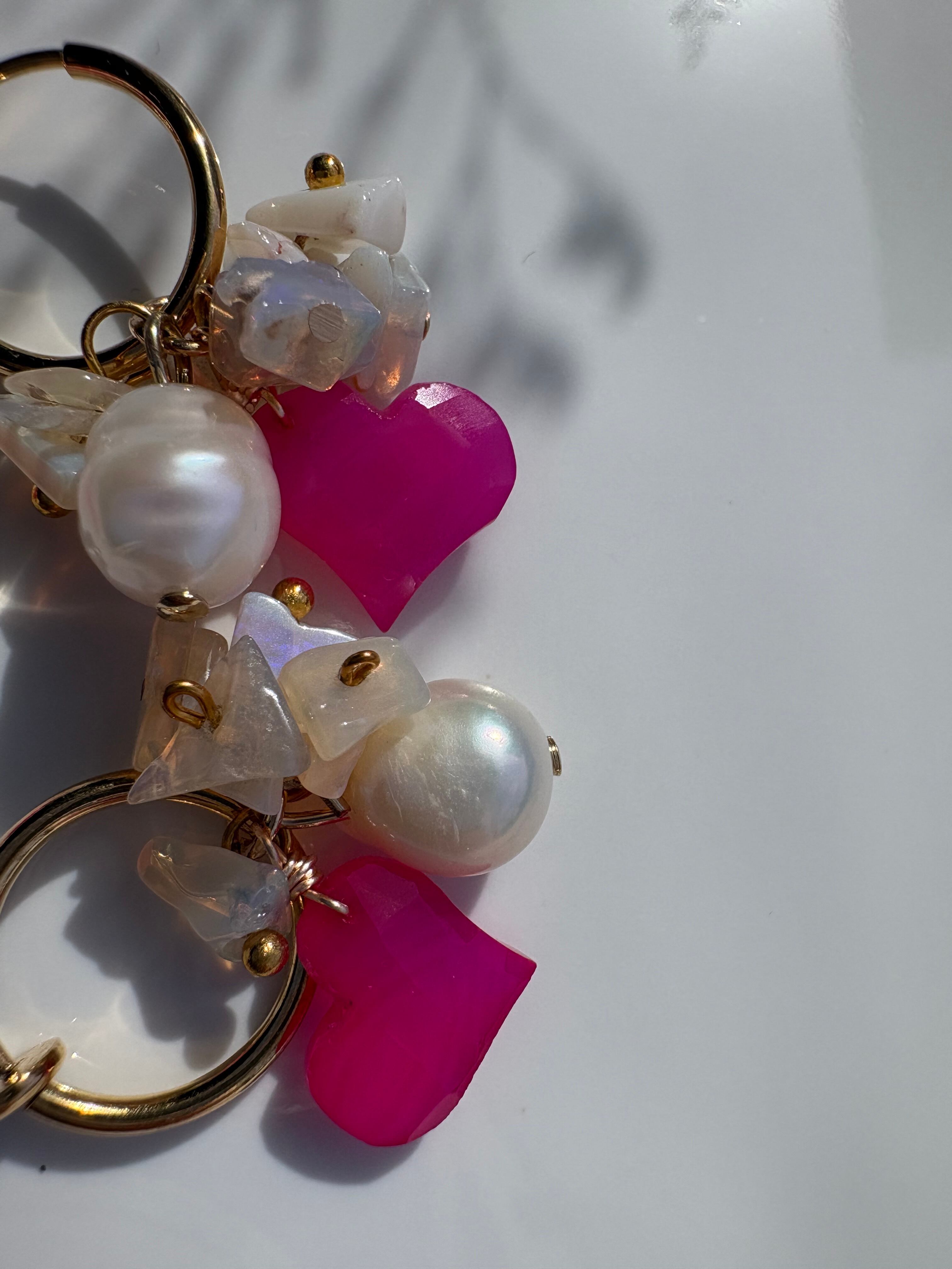 柔らかな石たちで包み込んだピンクカルセドニー。